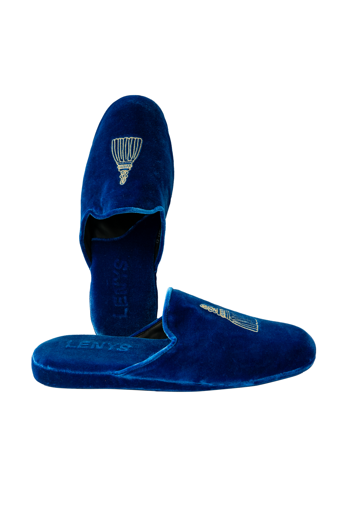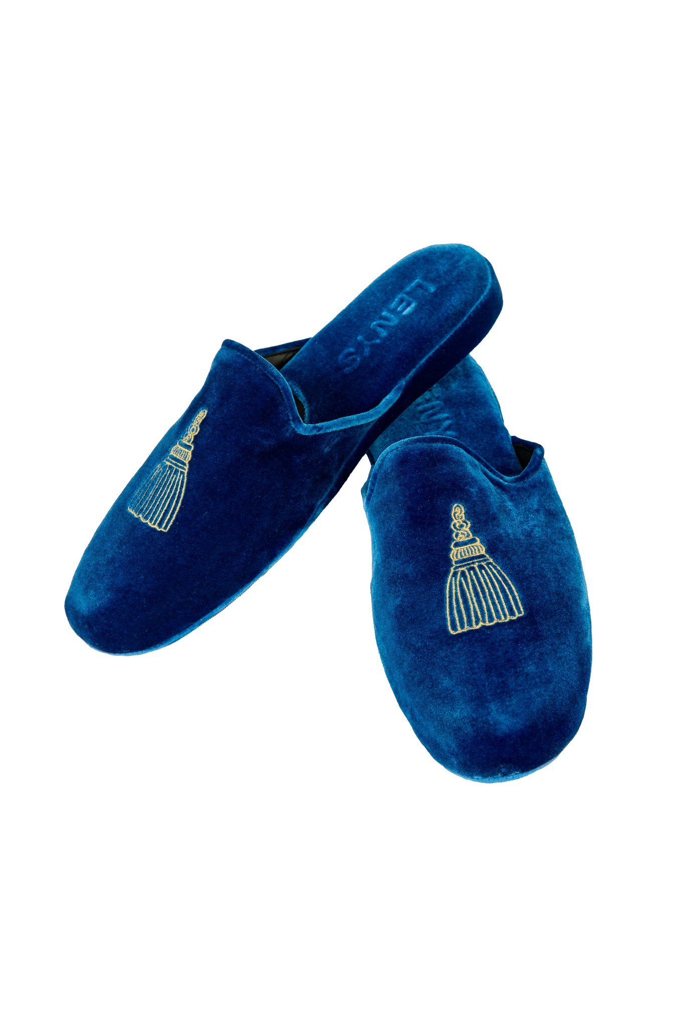 Hotel Saint Vincent x Lenys World limited release collaboration slipper inspired by our century's old iron work tassels on Lenys Yves Blue Velvet Marche to mirror our guest hallways.